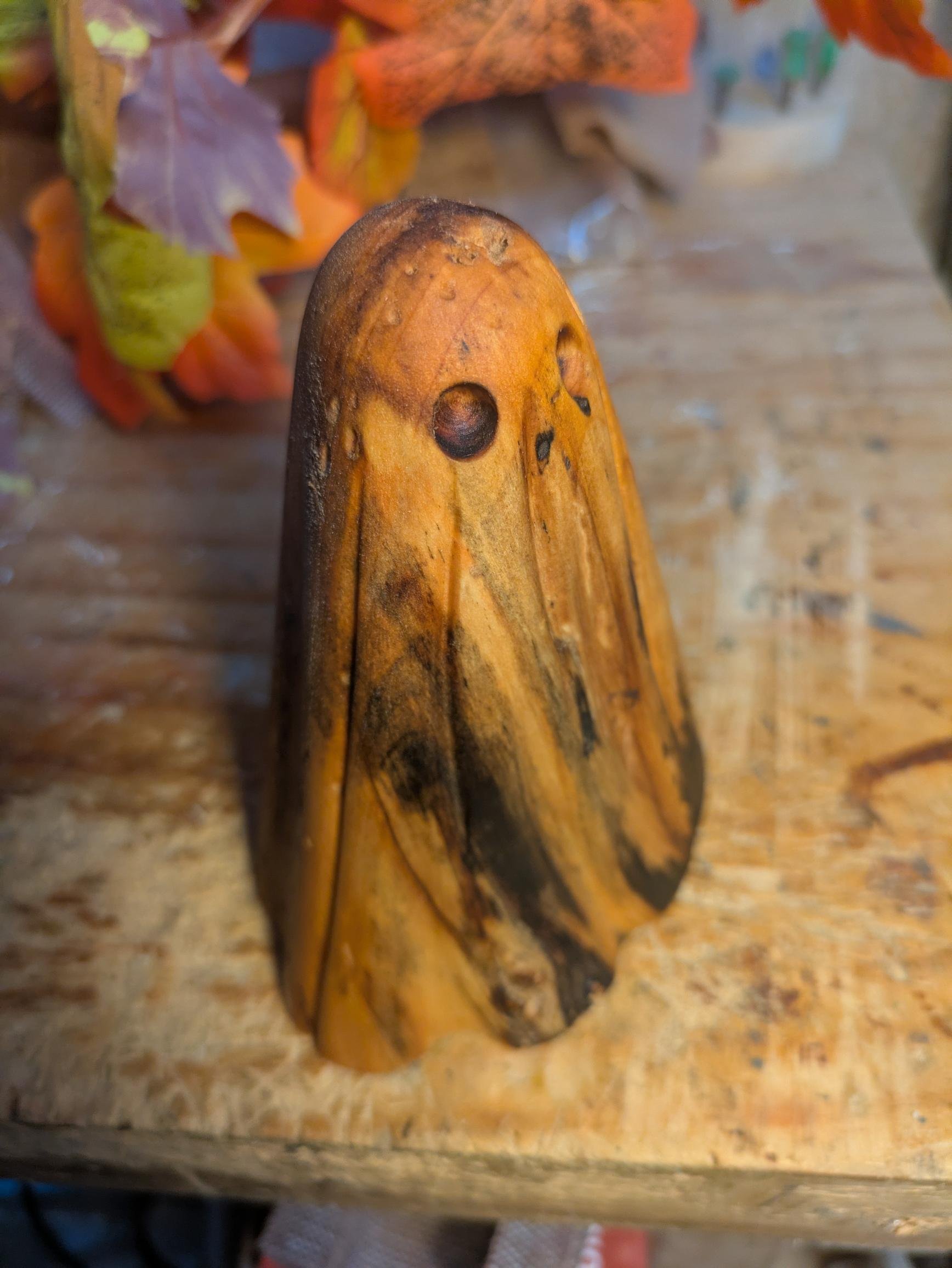 Carved ghost made from a piece of driftwood, approx size 126mm
