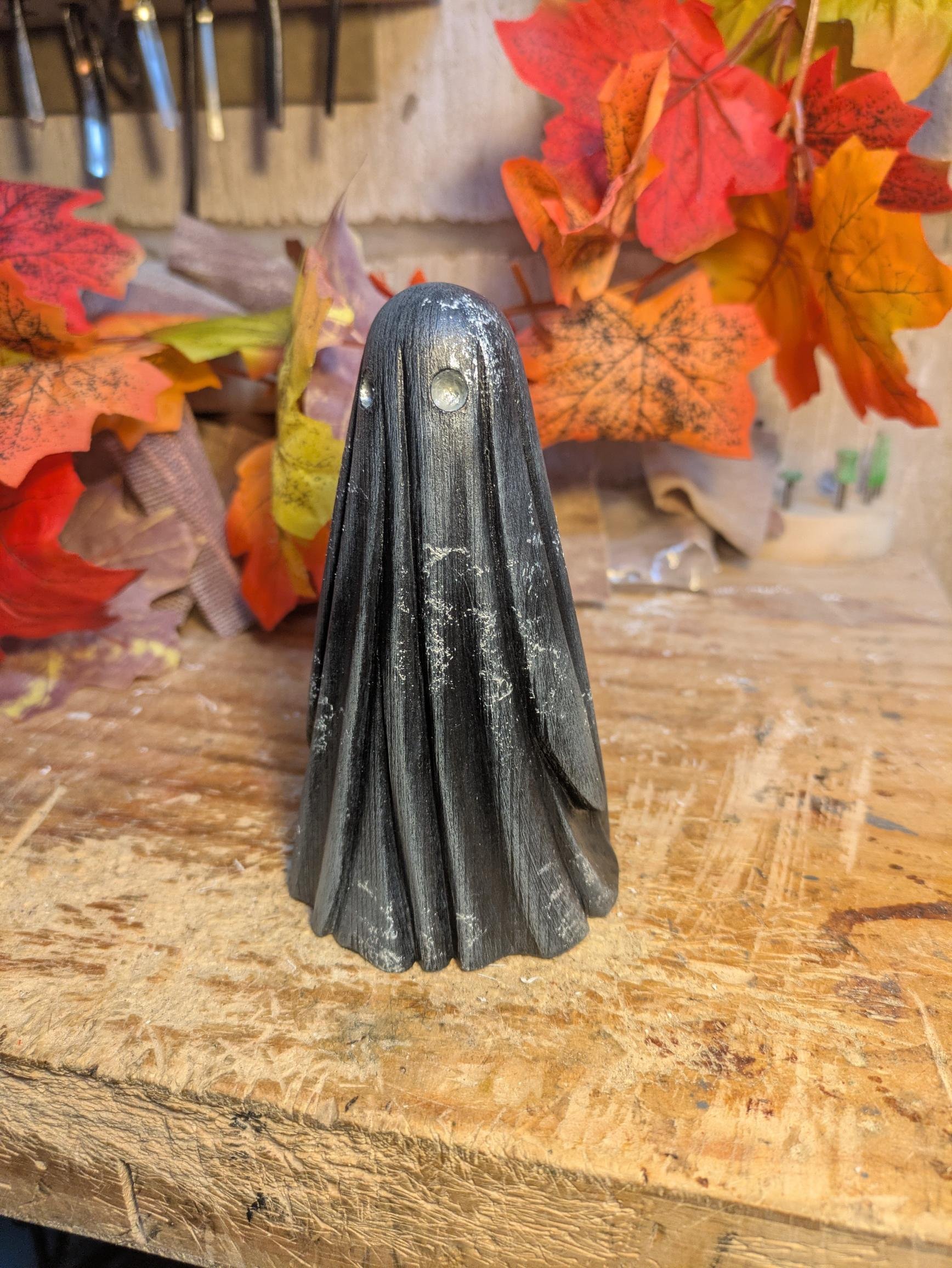 Pine carved ghost, painted with acrylics approx size 130mm